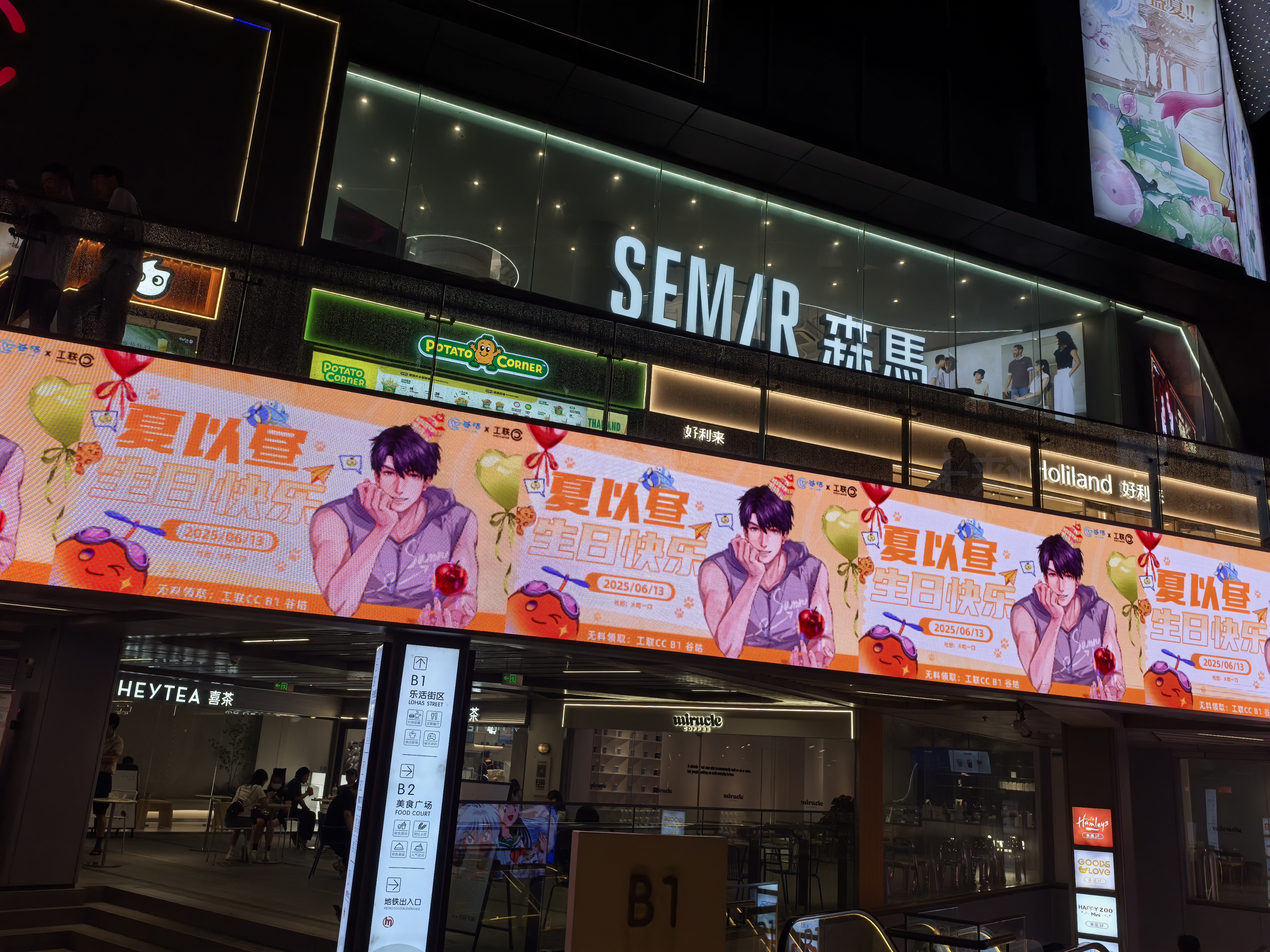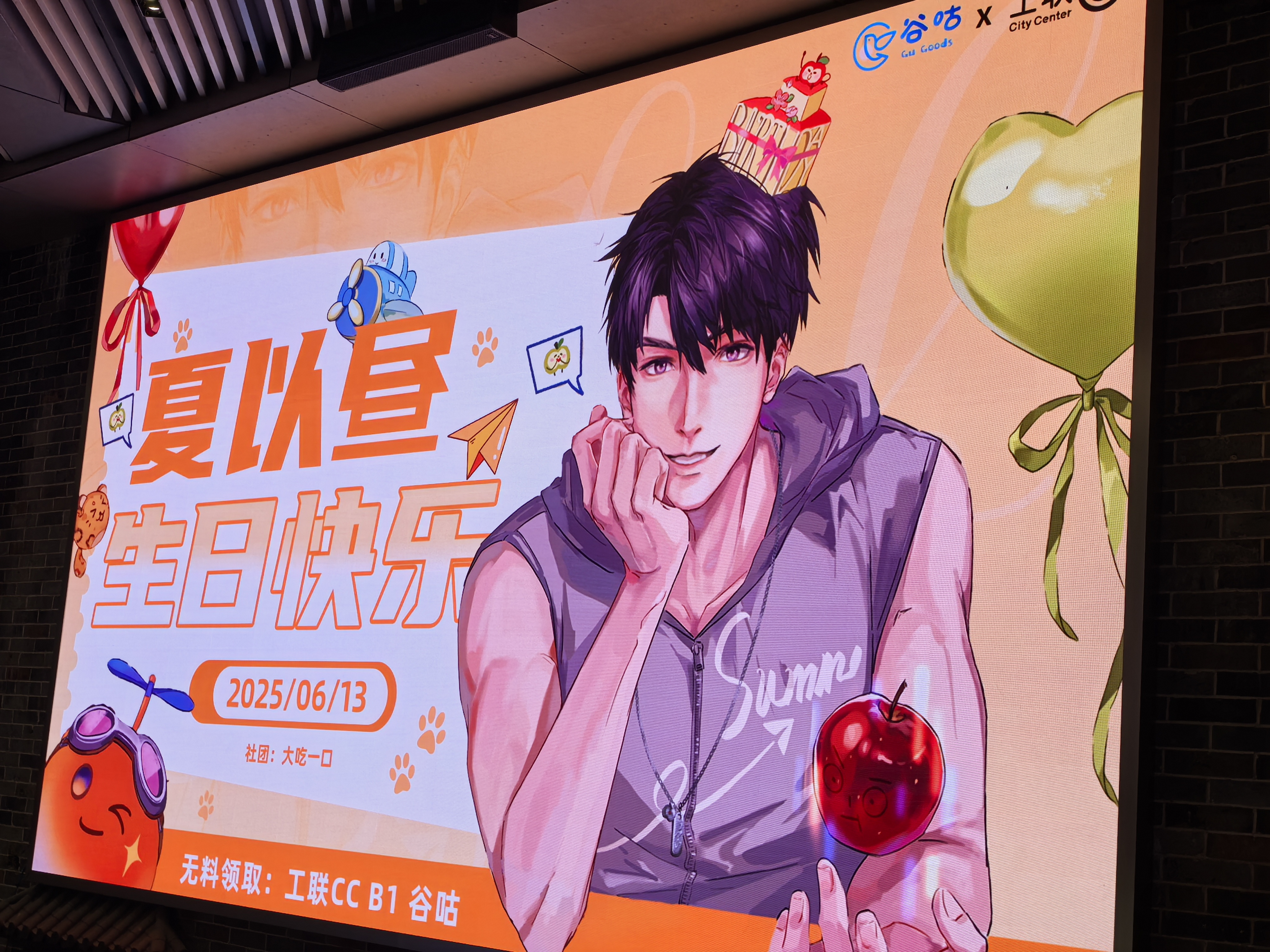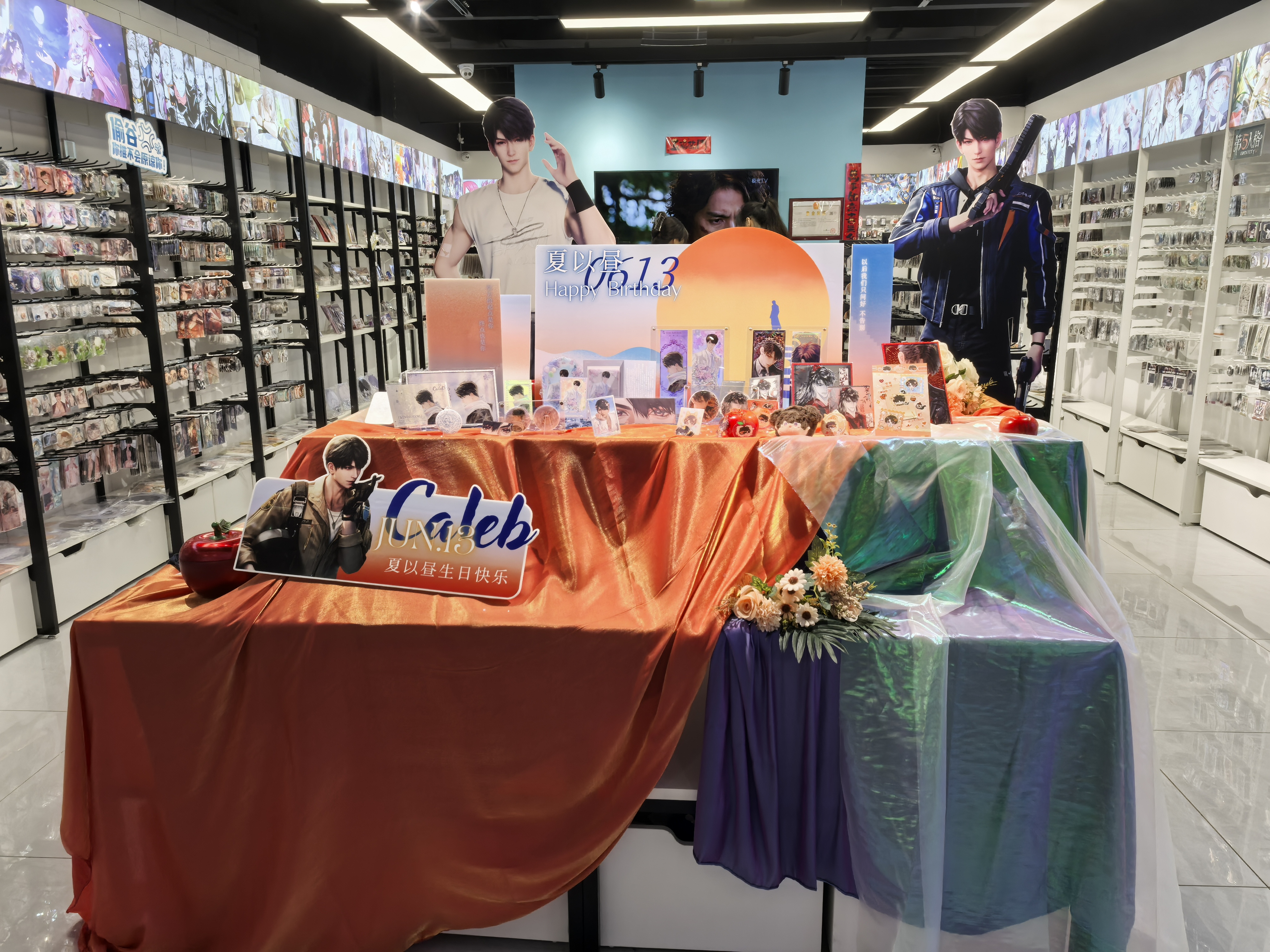 - ①天一酷购某家谷店里的夏以昼生日展架。展架上那些同人制品起码有两种我买过的hhh。