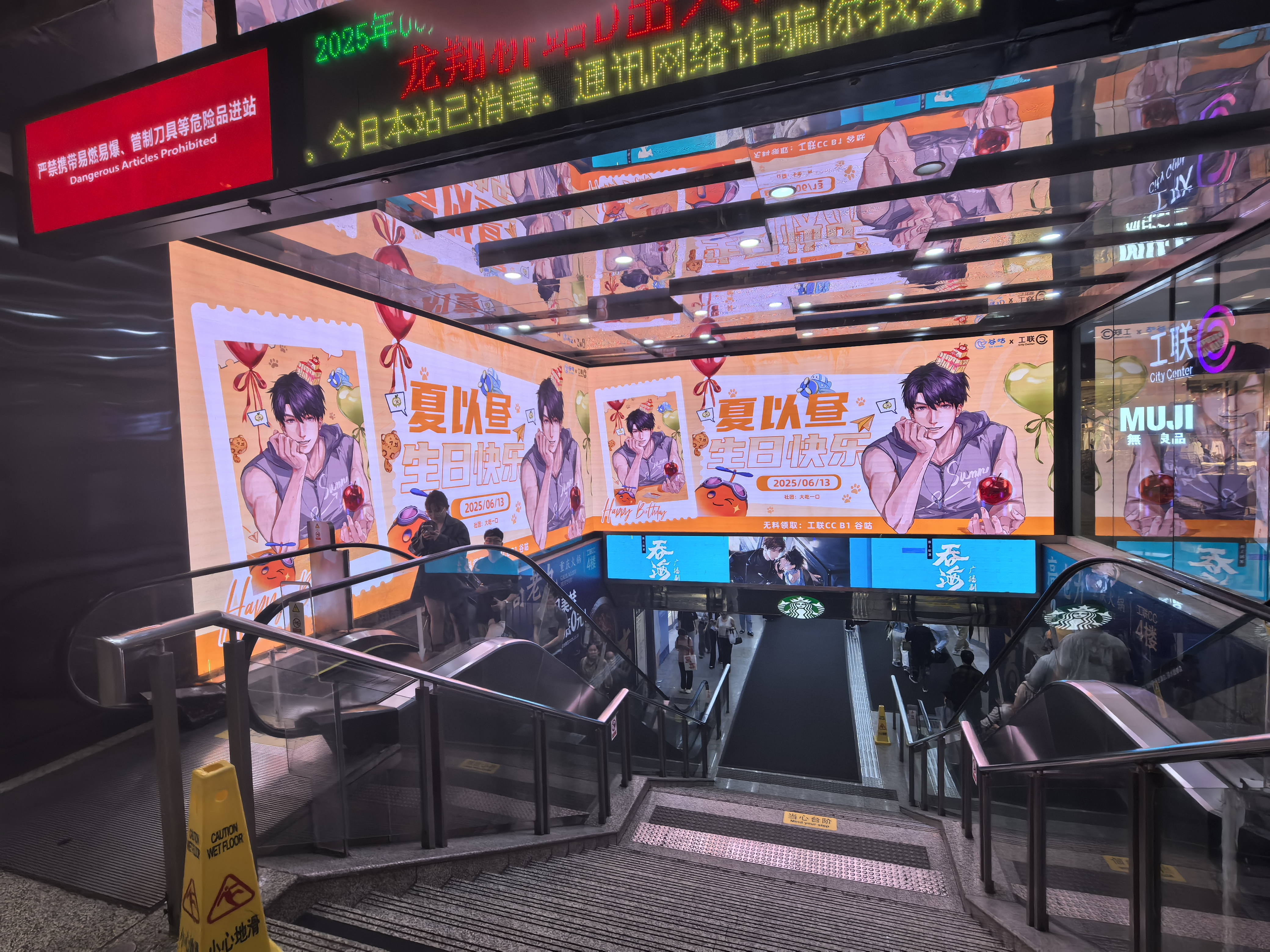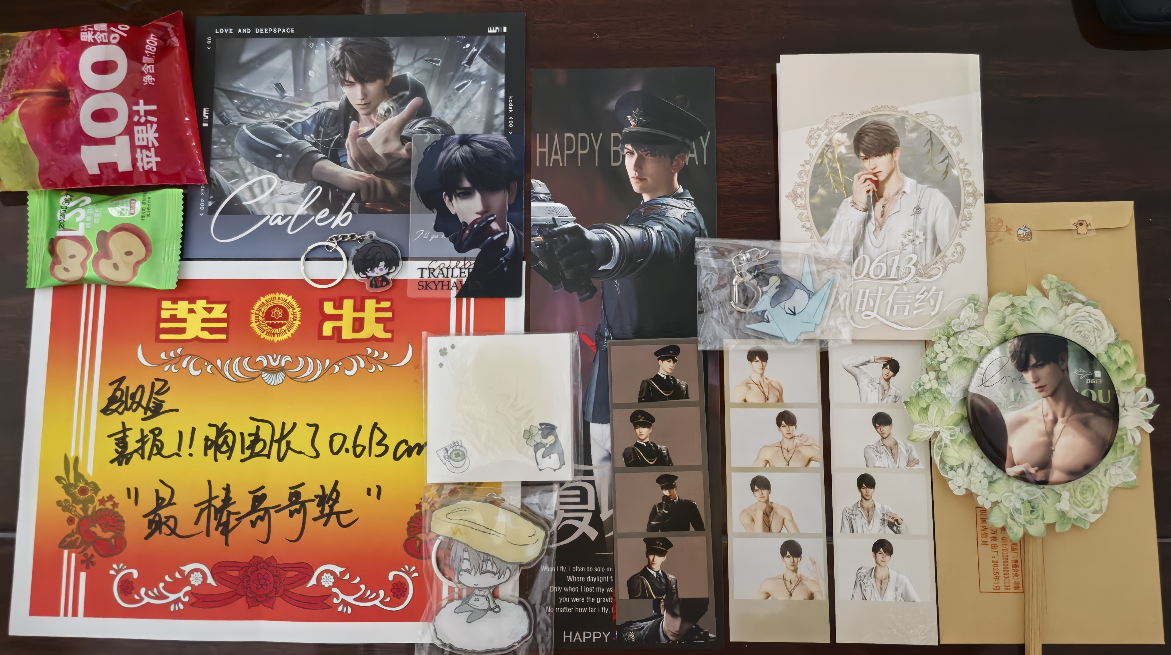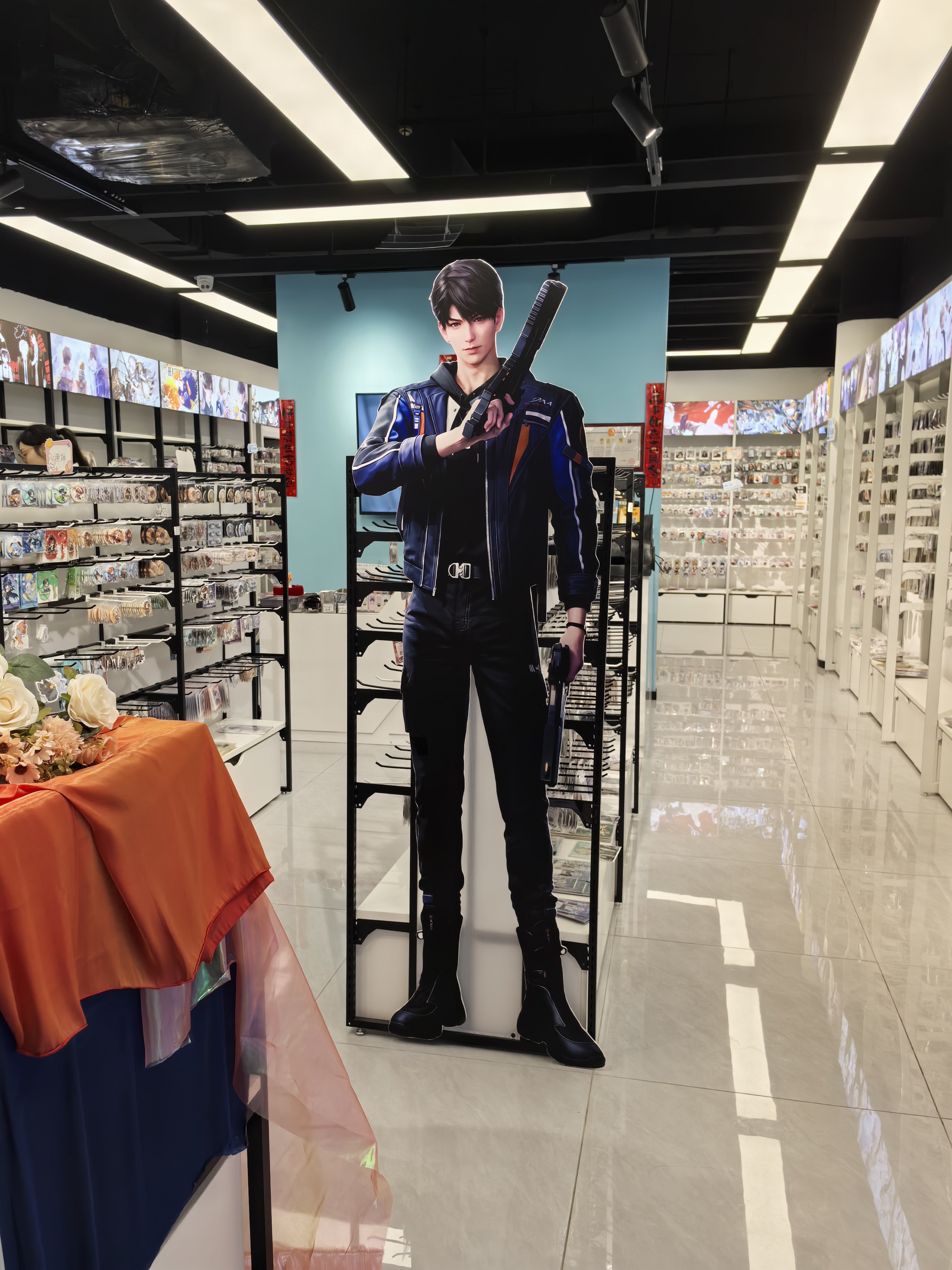 - ①天一酷购某家谷店里的夏以昼生日展架。展架上那些同人制品起码有两种我买过的hhh。