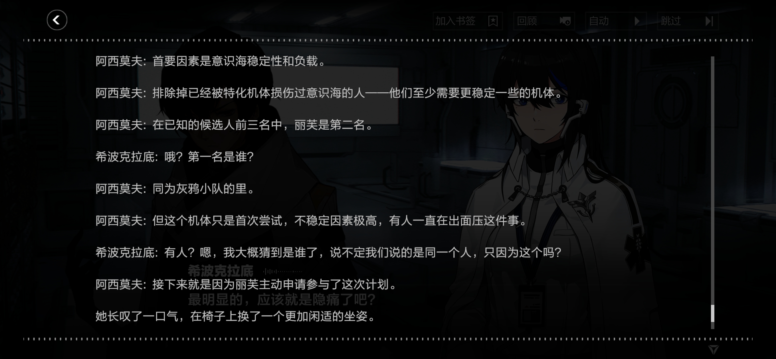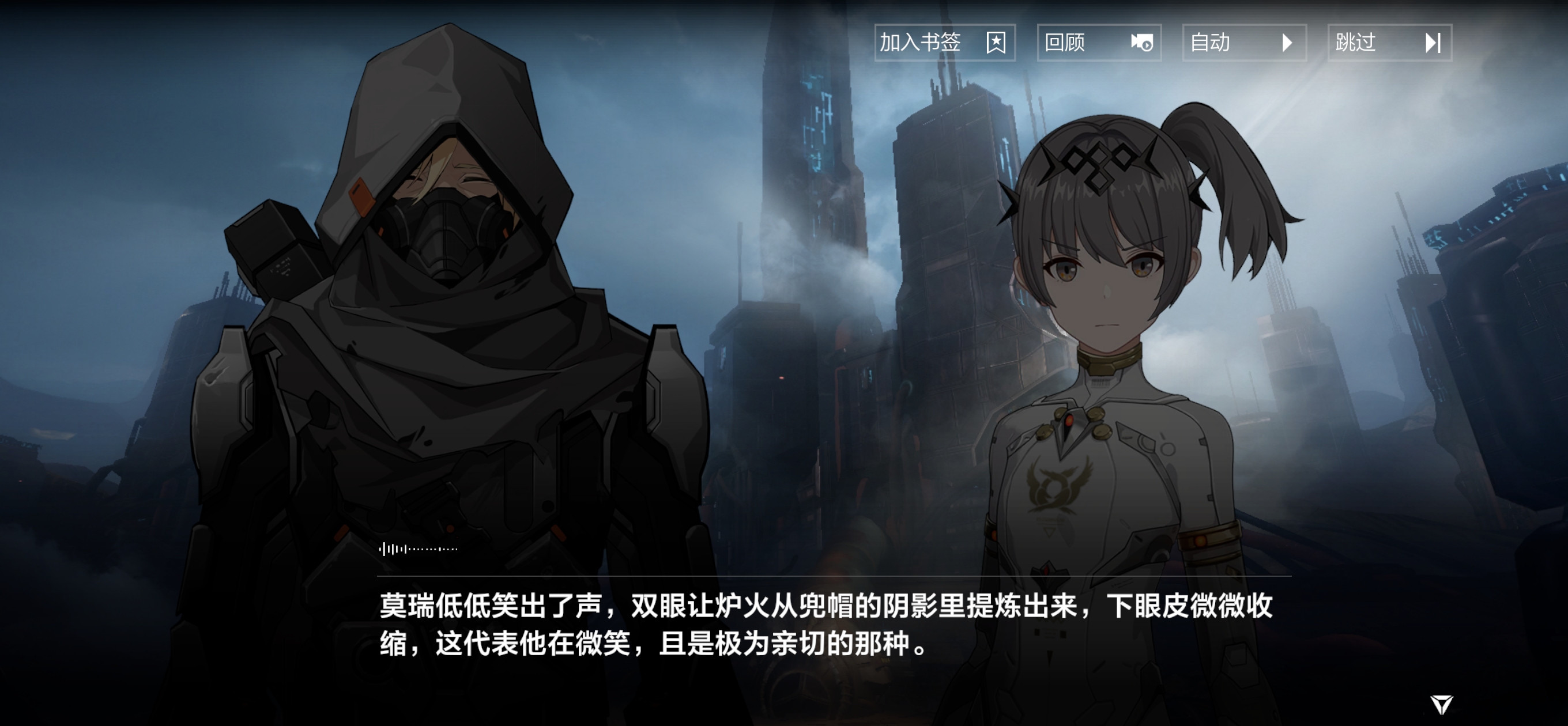 - 嗯……这里的CG应该有的微笑大致参考剧情这里的描写。这是格式塔第二次对机械教会的未来进行的推演中,被逼陷入绝望境地的莫瑞所露出的不合时宜的笑容。