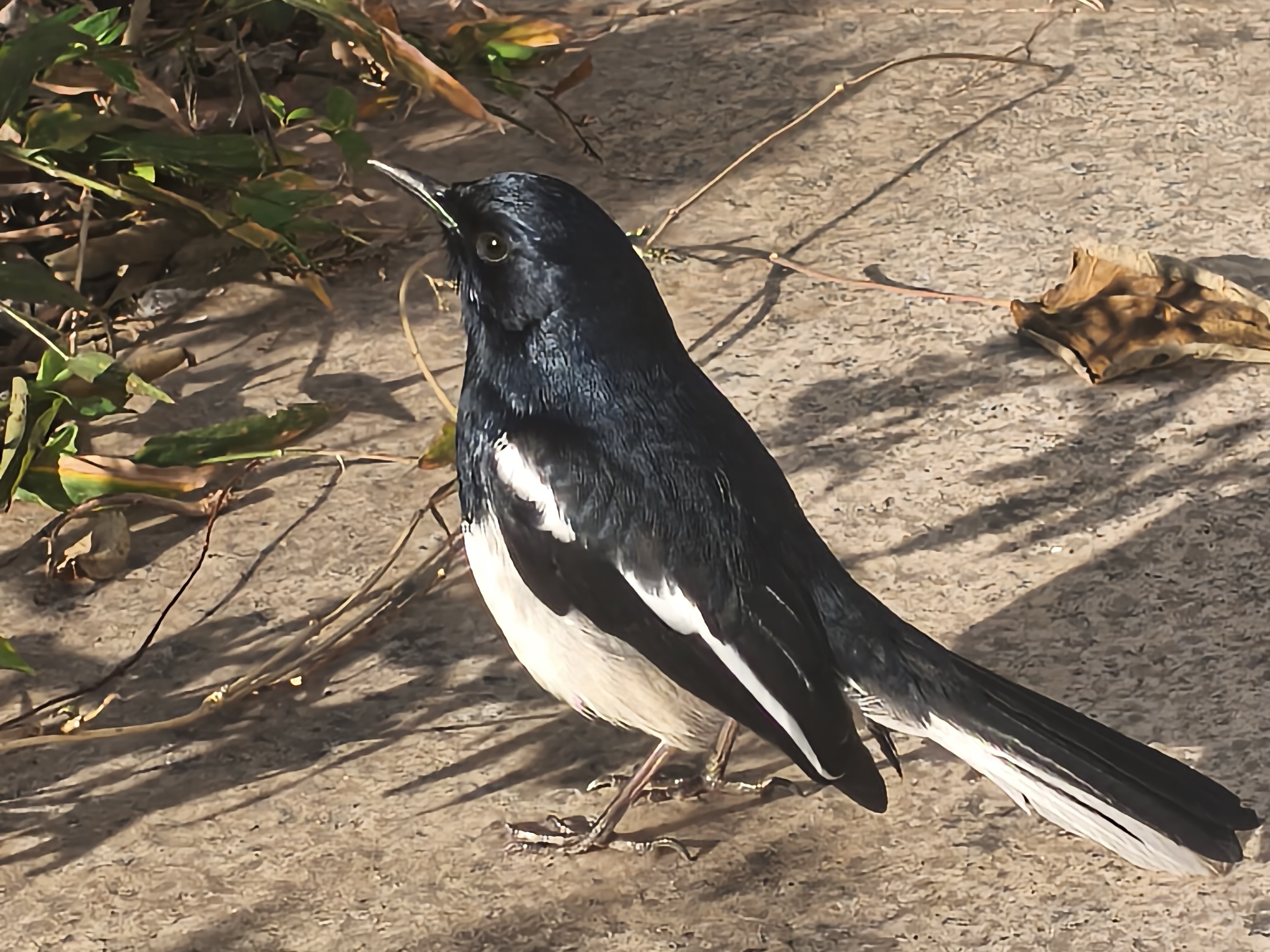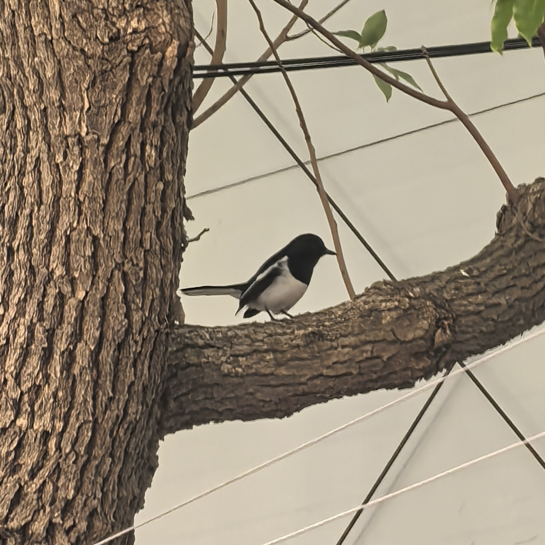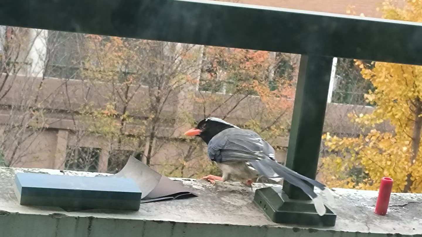 - 高中同班同学拍到的他们学校图书馆外的鹊鸲弟弟。