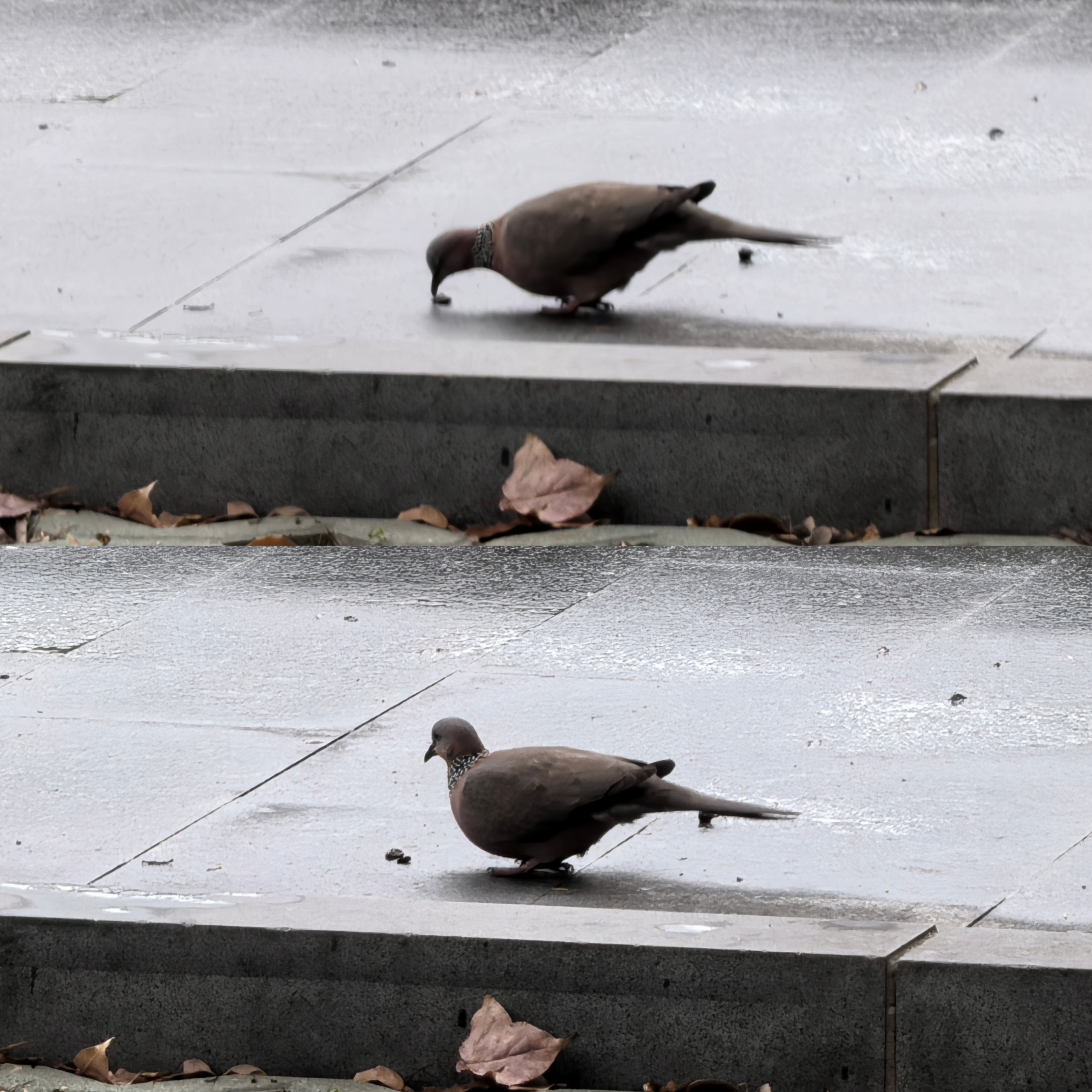- 在清真食堂门口不远处啄食地上未知物体的珠颈。