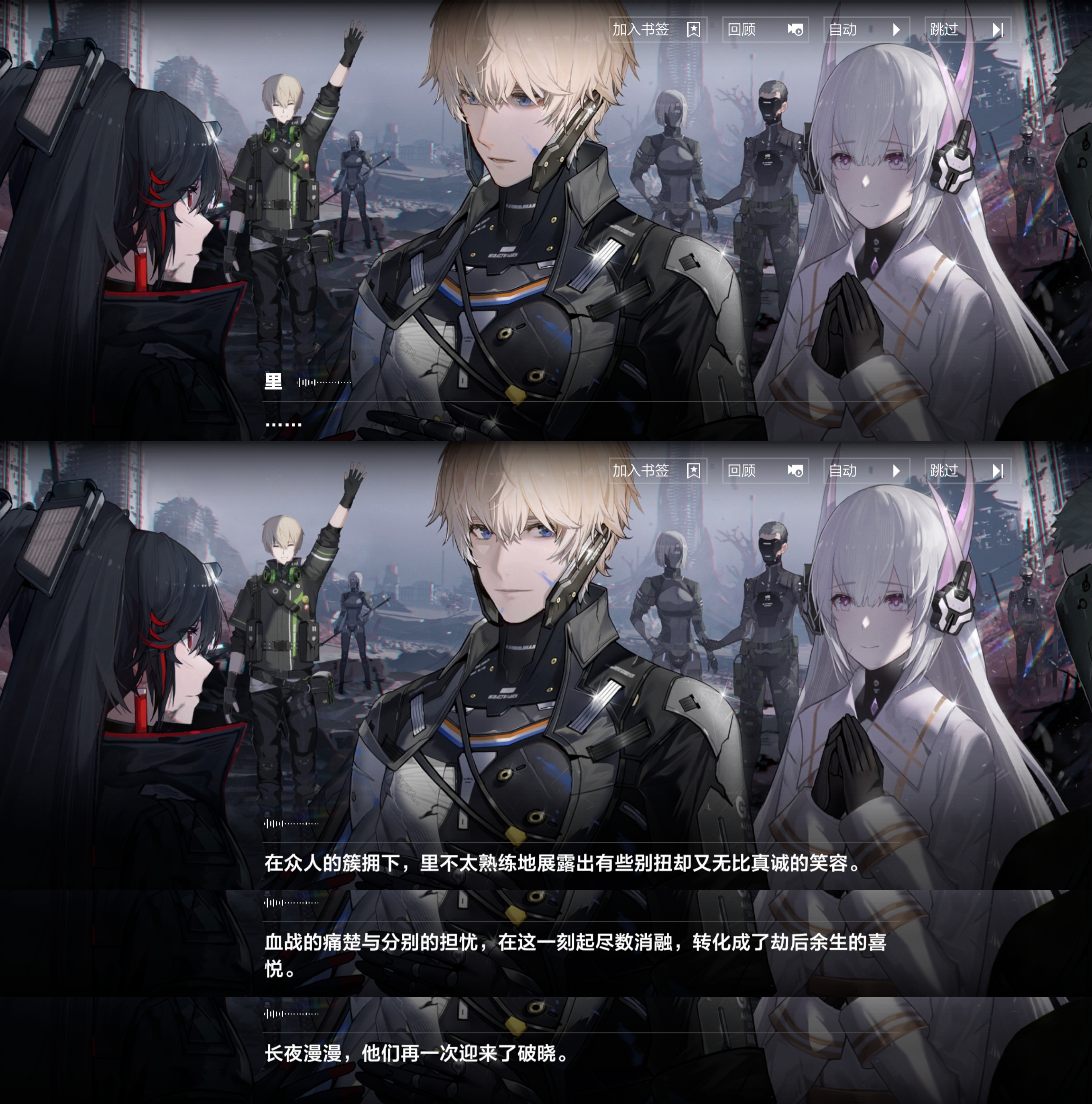家人是无法替代的存在 2025-12-19 二次 179 words LeeMurray战双帕尼尼手游 谁懂无配音的PPT视觉小说式战双主线突然冒出松冈祯丞一句皆さん、ただいま的救赎感…… 那一刻真的对超刻的凯旋有了实感。以后可以主线全配音吗?kl我点你呢。 米娜桑,他大姨妈!米娜桑,他大姨妈!米娜桑,他大姨妈! 哎,好欣慰啊! 伊什梅尔的箴言。 “家人是无法替代的存在。” 飞鸟归巢。 火子哥的深情表白。 其实他承认我是他跟莫瑞一样重要的家人时,就已经表白了。桀桀桀桀桀桀! 百万牵绊留影 私たちの初めての冬