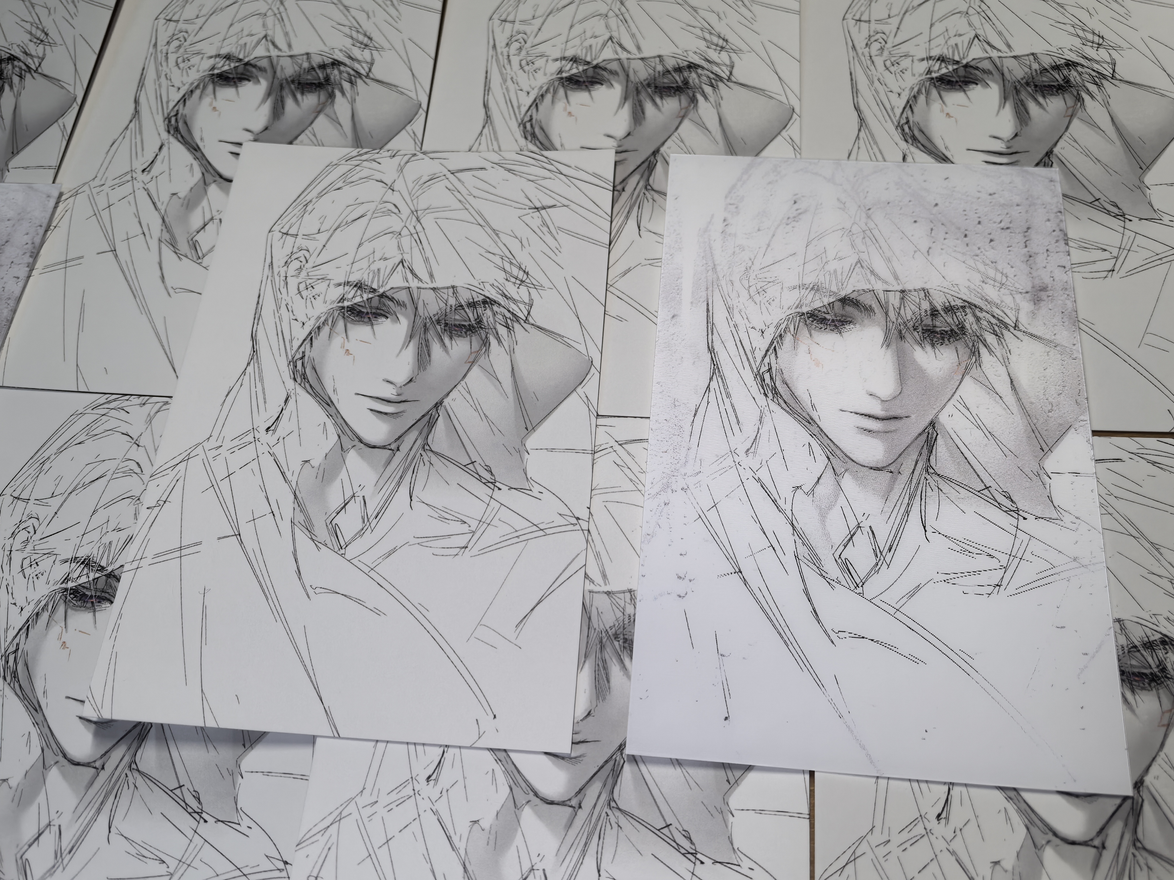 - ②帮代购CP32pre制品的棱纯大人把霍山老师的制品带给了我。我惊喜地发现霍山送了我很多很多明信片,包括我在线上跟她说过的、我想入大量复数的“雨下头纱”的X-02柄图的10张明信片,和很多其他柄图的美丽制品;