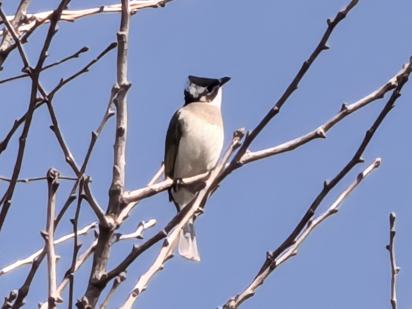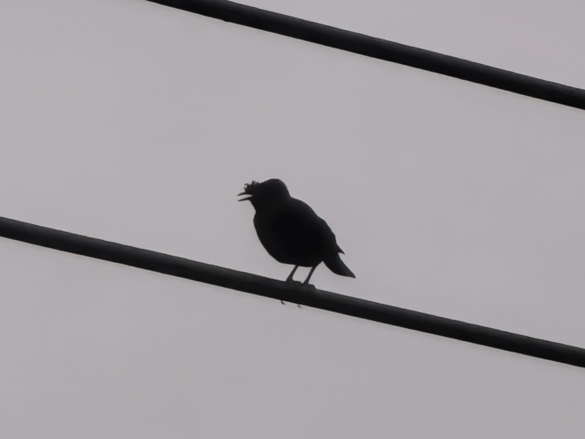 - 逆光且有雾情况下拍到的黑鸟,放大一看有羽冠,那还说啥了,包是bug的()