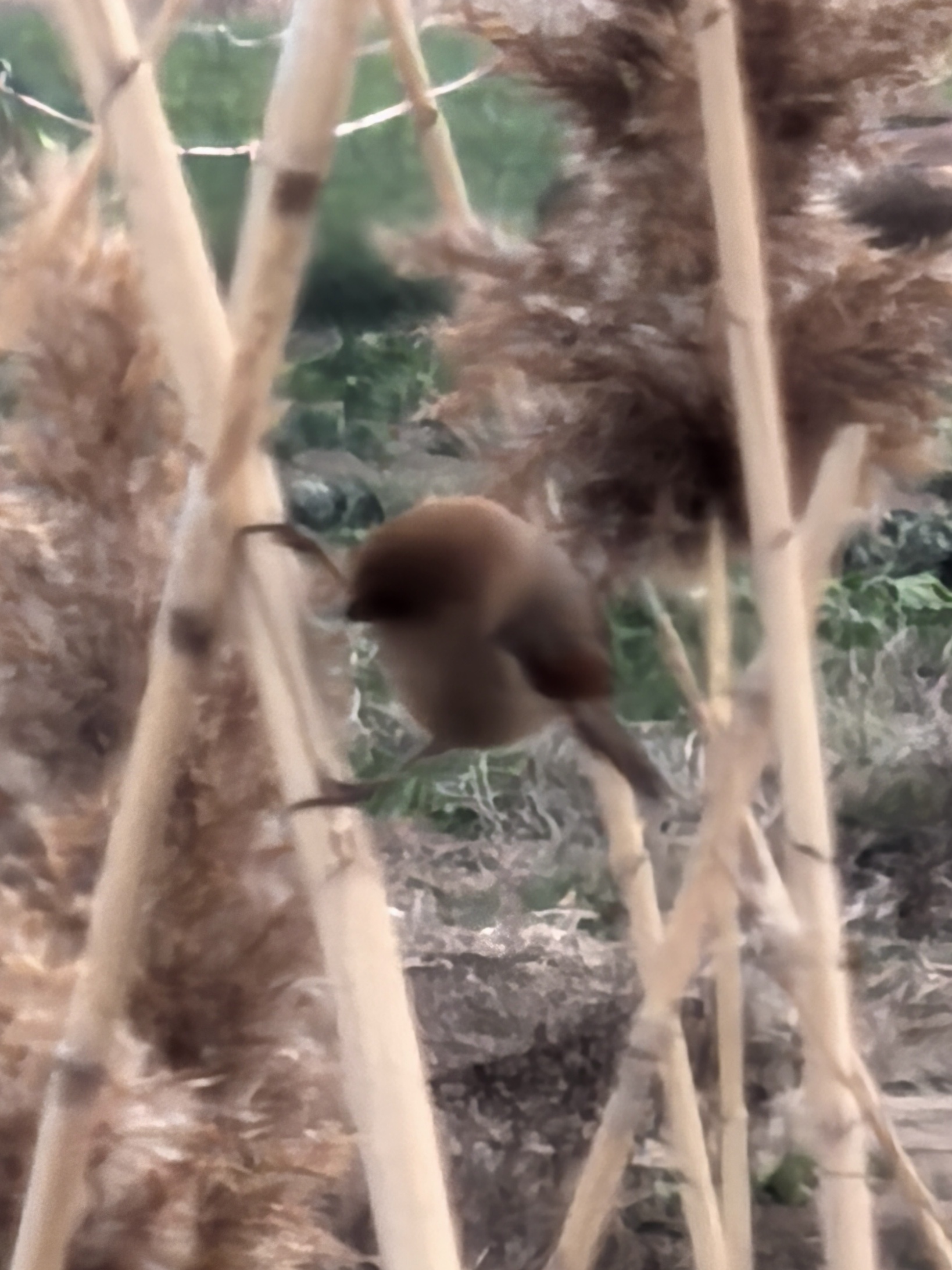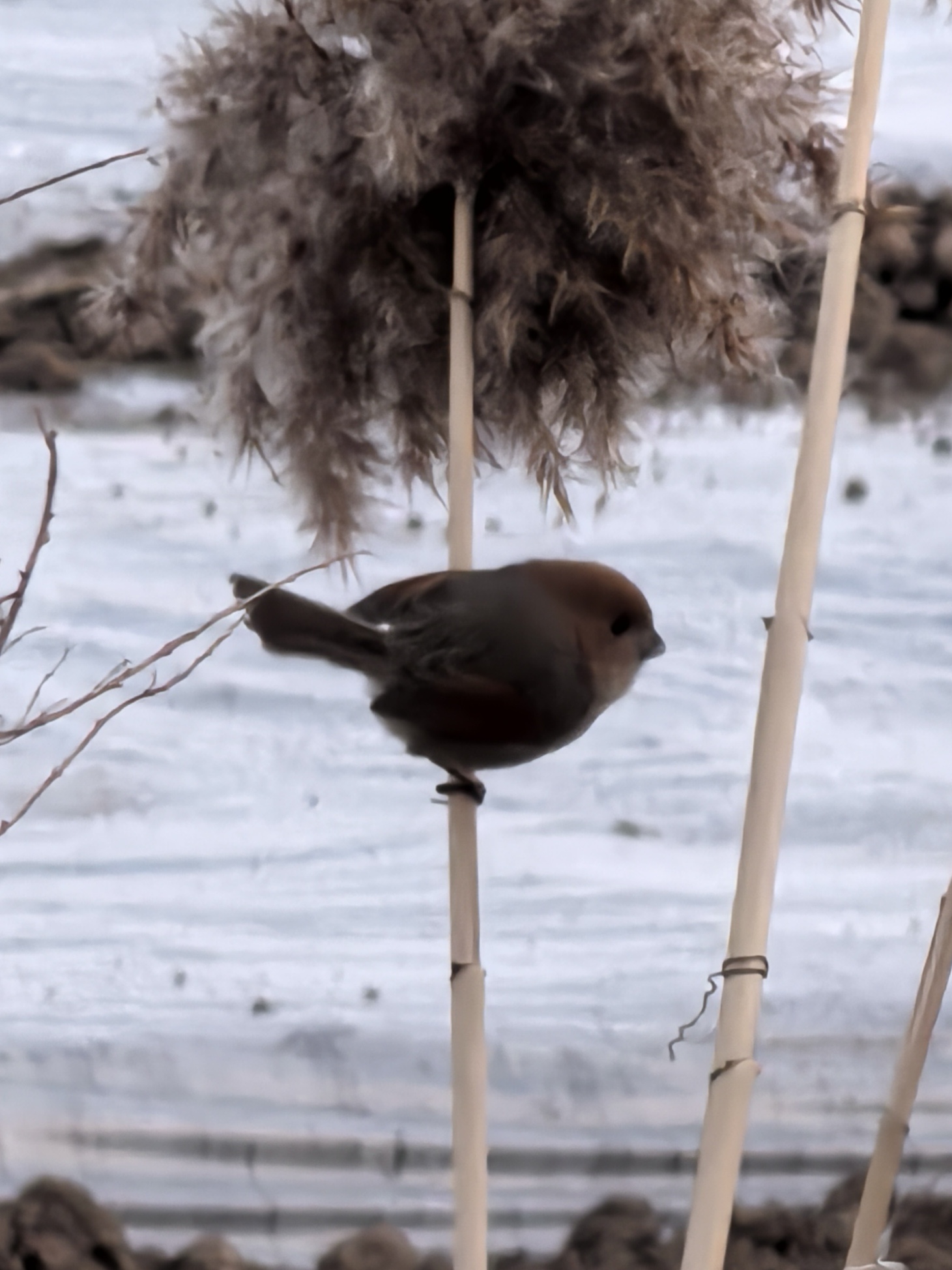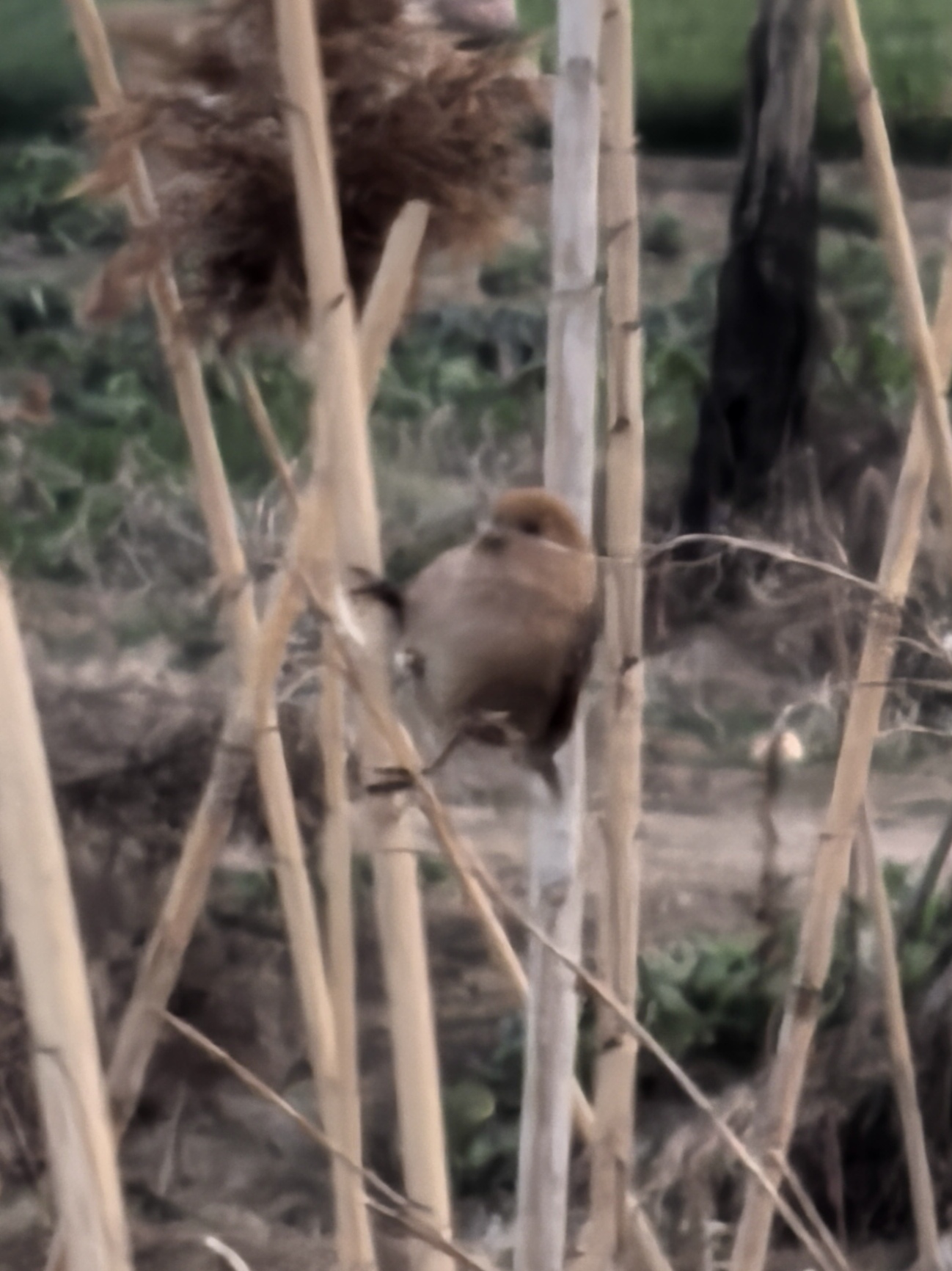 - 看到我家旁边水沟里那片芦苇荡就知道拍到鸟这事儿有戏了,没想到真的能成!当时在家门前的地里转了一圈,本想去芦苇荡边上看看的,但那里一片死寂,全无鸟声,于是我就死心,跑上楼玩战双去了。我玩了一会儿就走到了二楼露台上,向芦苇荡那边看,发现其中几枝芦苇有异动(显然不属于风吹动的情况),并且内随一阵阵的唧唧啾啾声。大喜过望的我立马跑下楼,成功获得了观鸟图鉴开新的奖励🥰🥰🥰