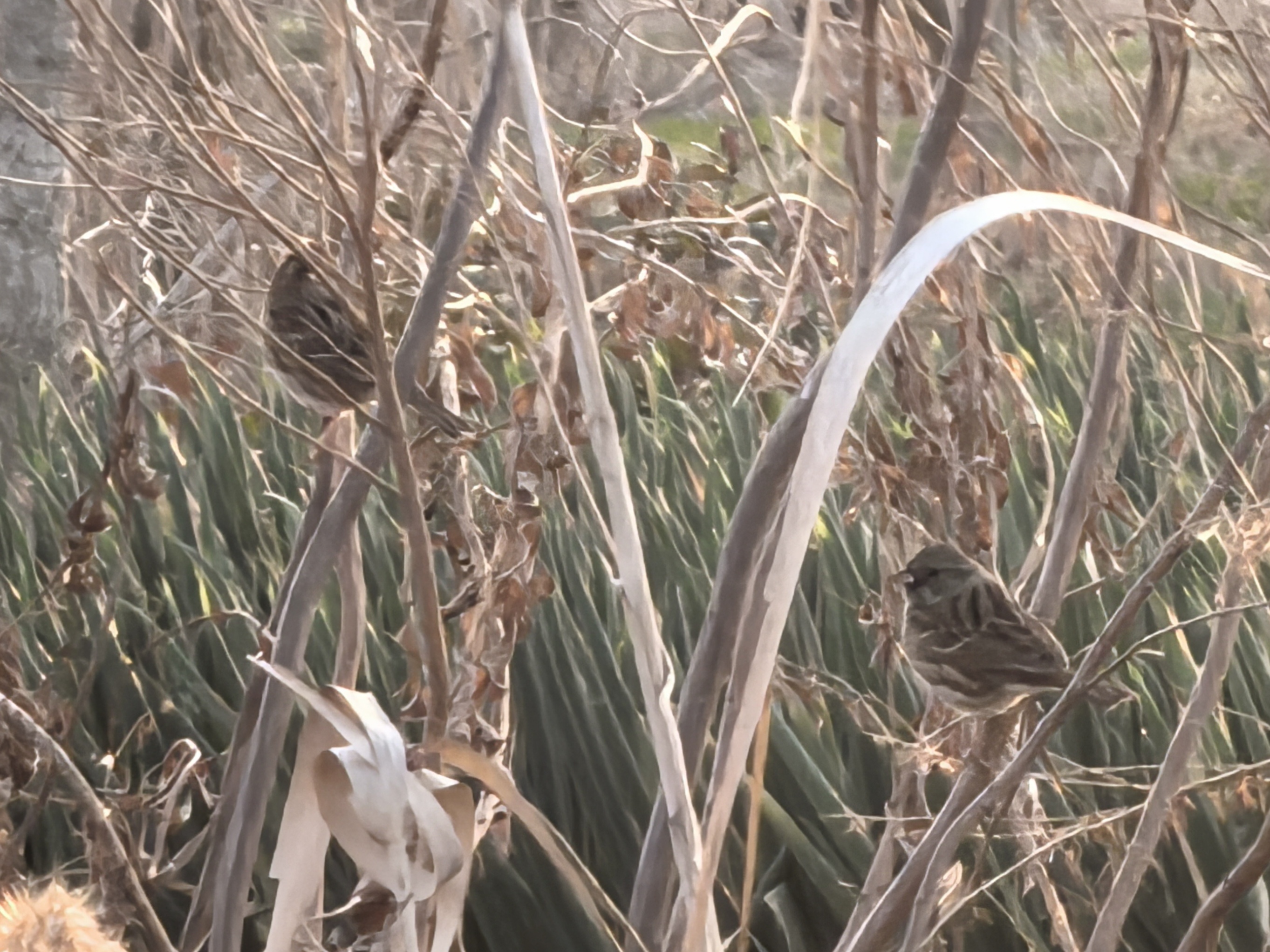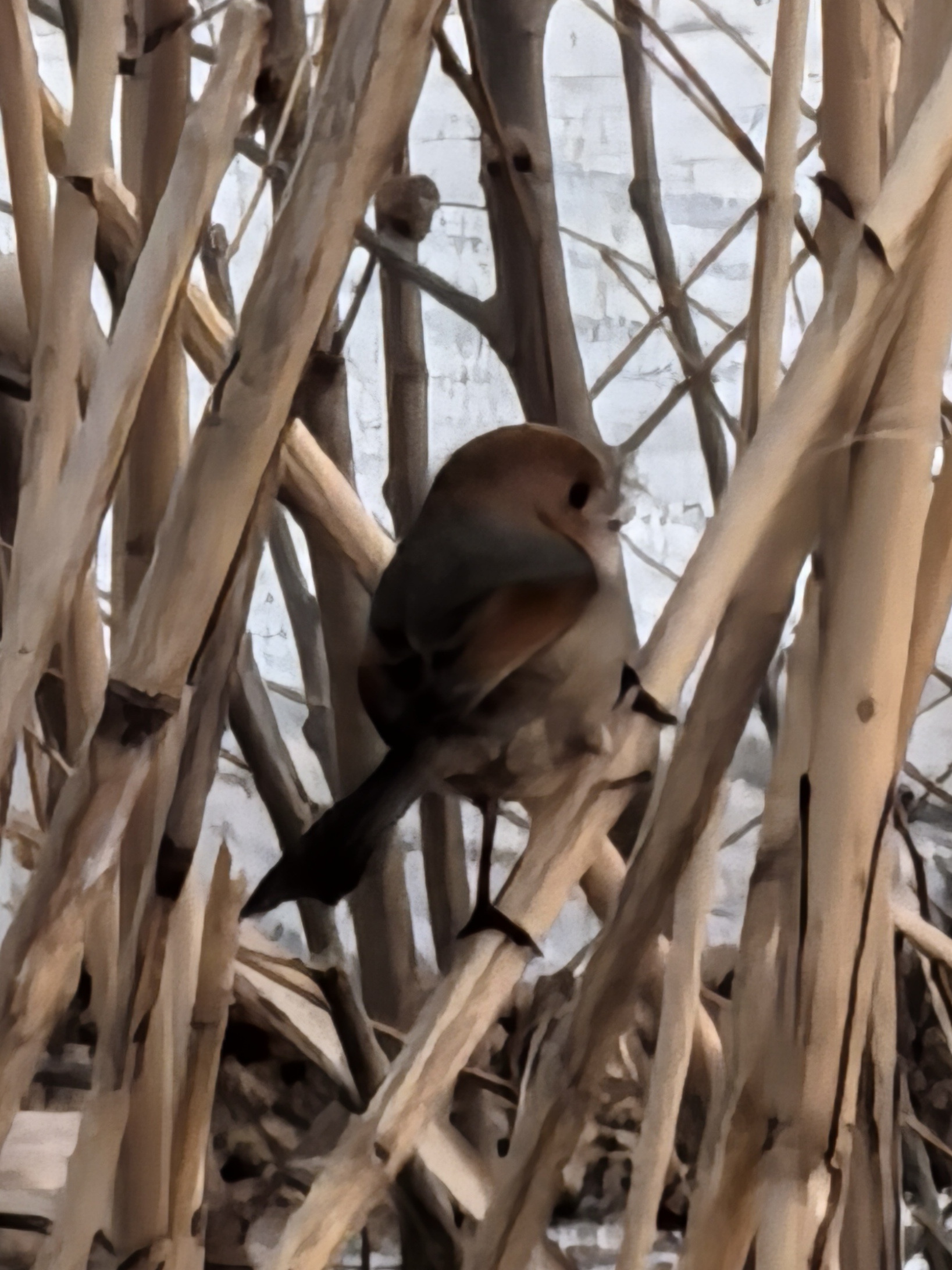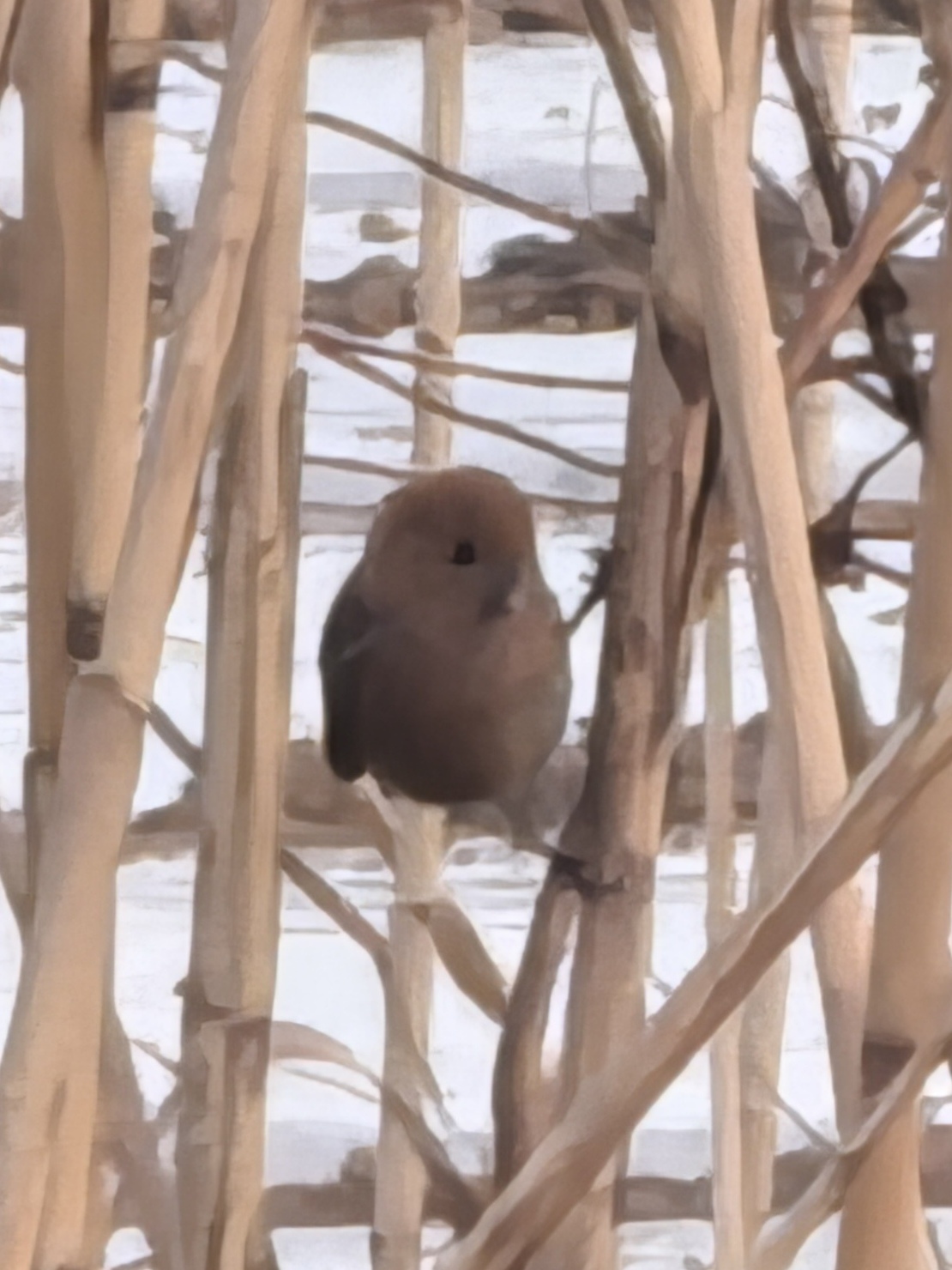 - 看到我家旁边水沟里那片芦苇荡就知道拍到鸟这事儿有戏了,没想到真的能成!当时在家门前的地里转了一圈,本想去芦苇荡边上看看的,但那里一片死寂,全无鸟声,于是我就死心,跑上楼玩战双去了。我玩了一会儿就走到了二楼露台上,向芦苇荡那边看,发现其中几枝芦苇有异动(显然不属于风吹动的情况),并且内随一阵阵的唧唧啾啾声。大喜过望的我立马跑下楼,成功获得了观鸟图鉴开新的奖励🥰🥰🥰