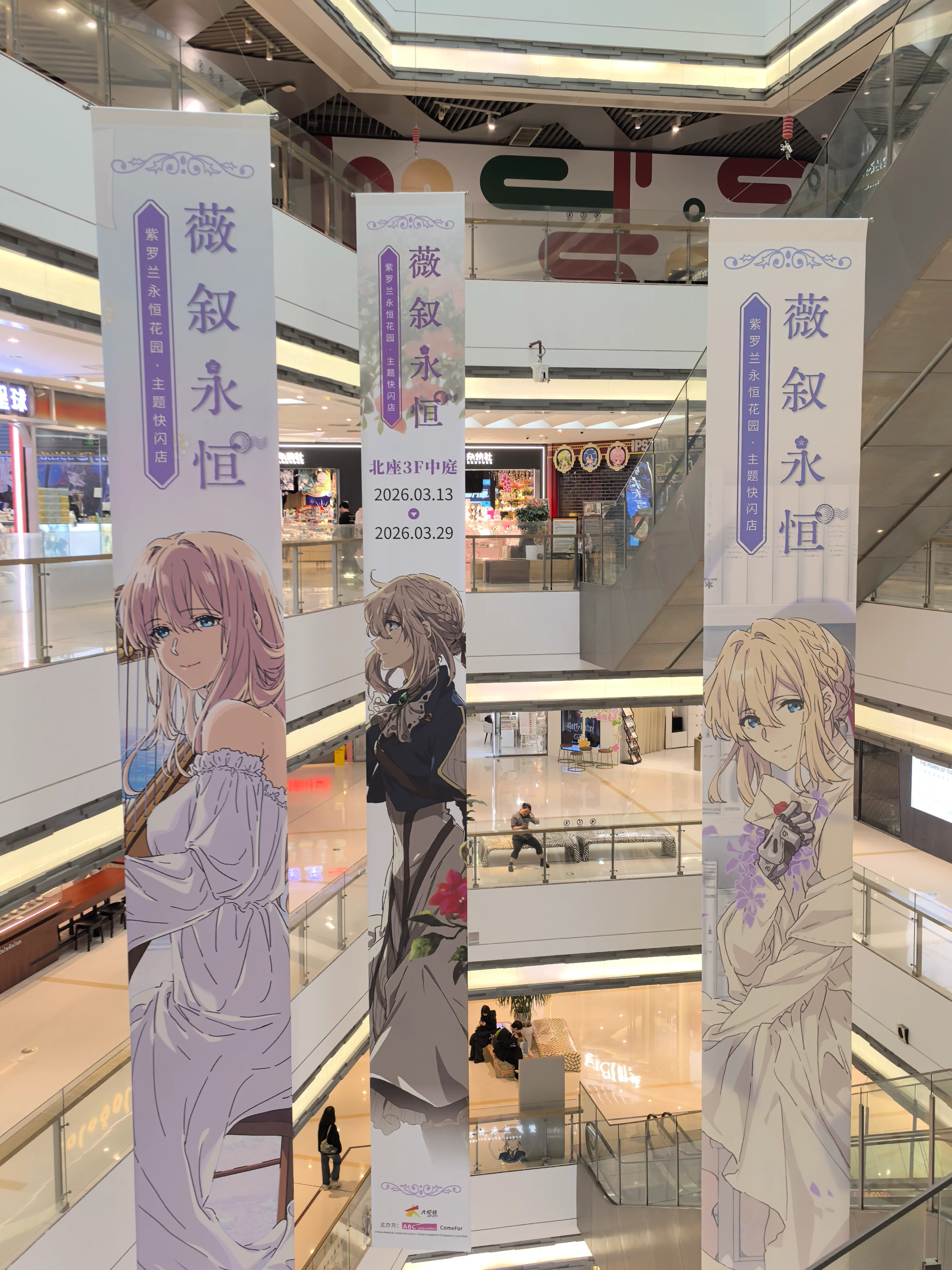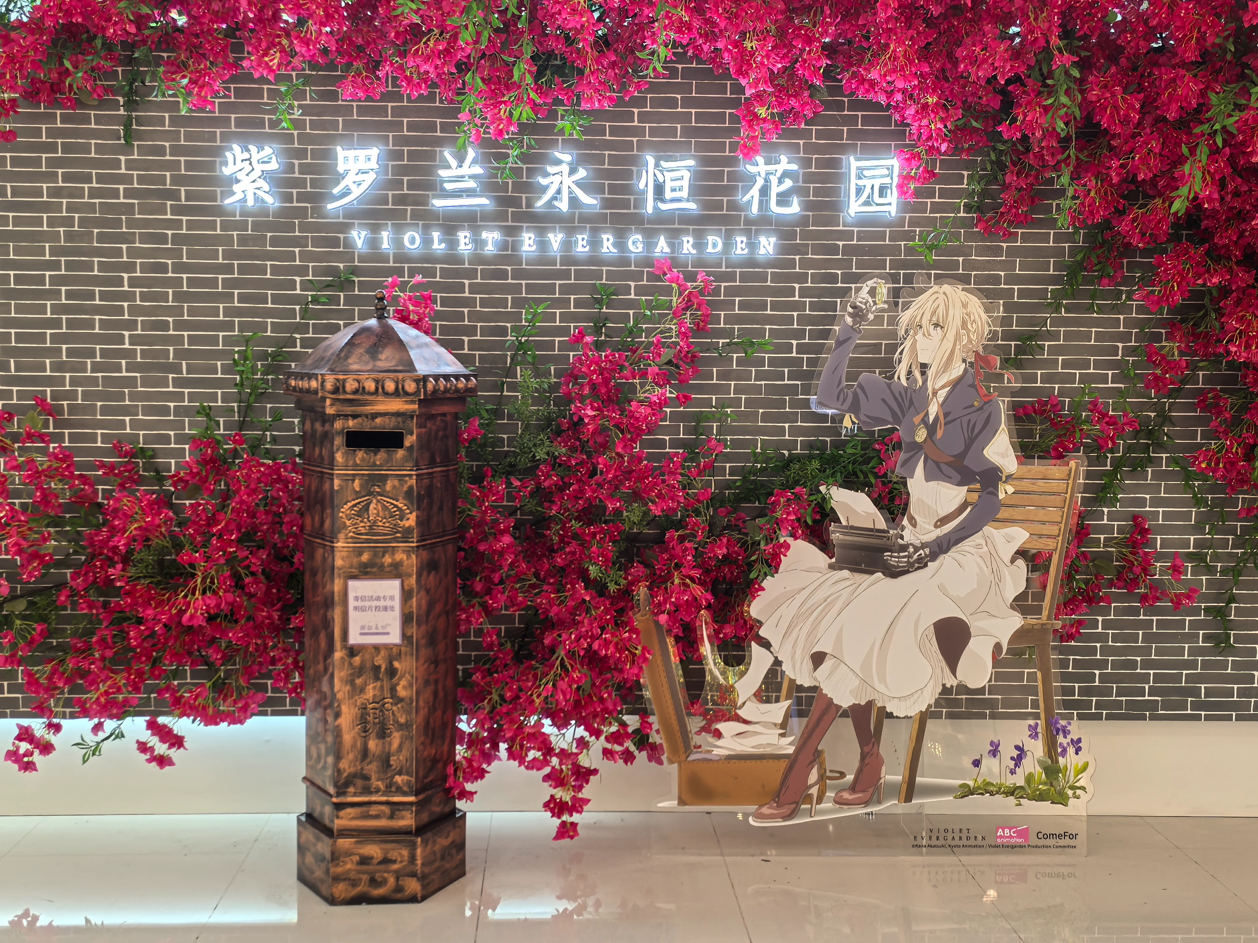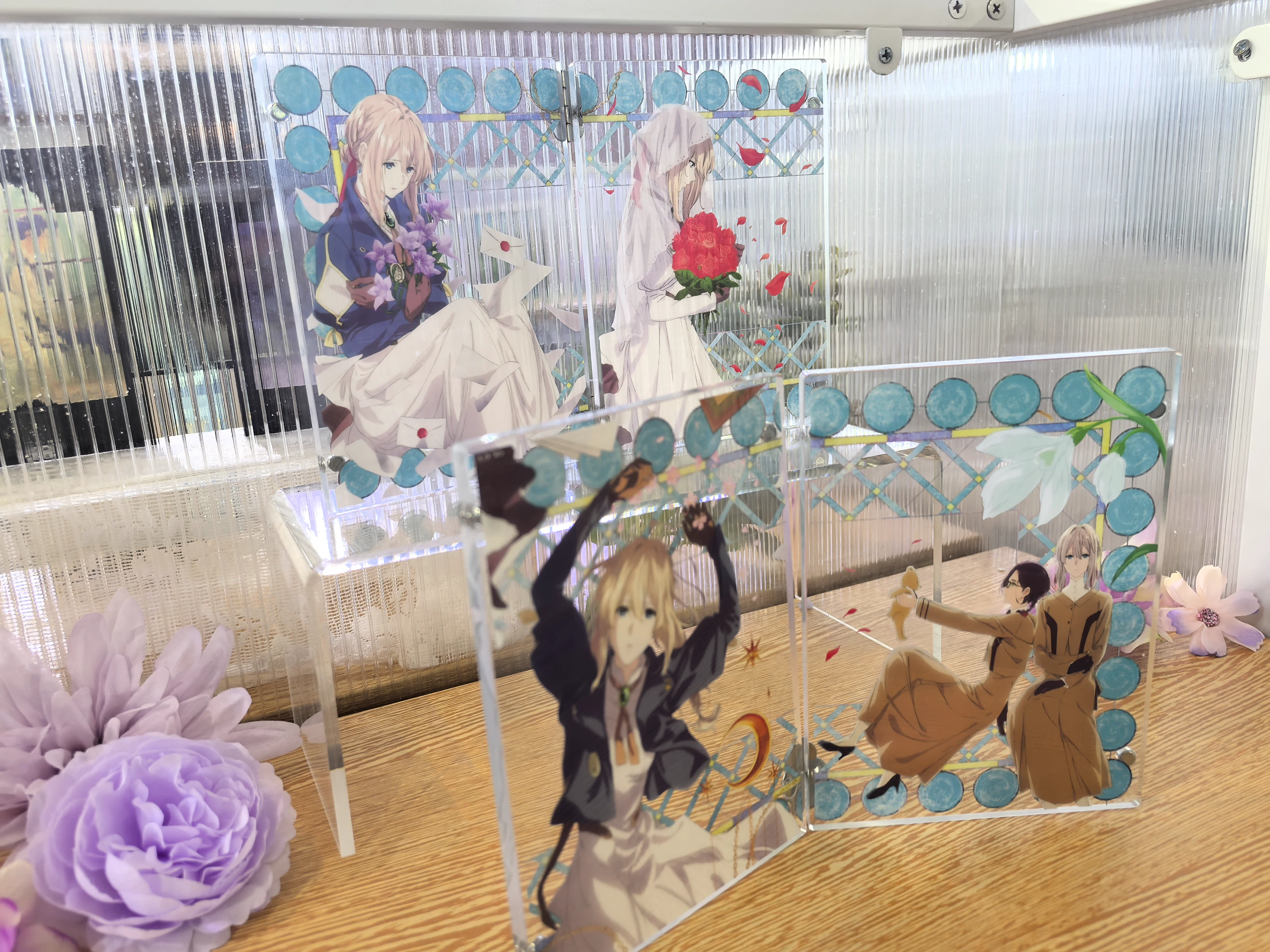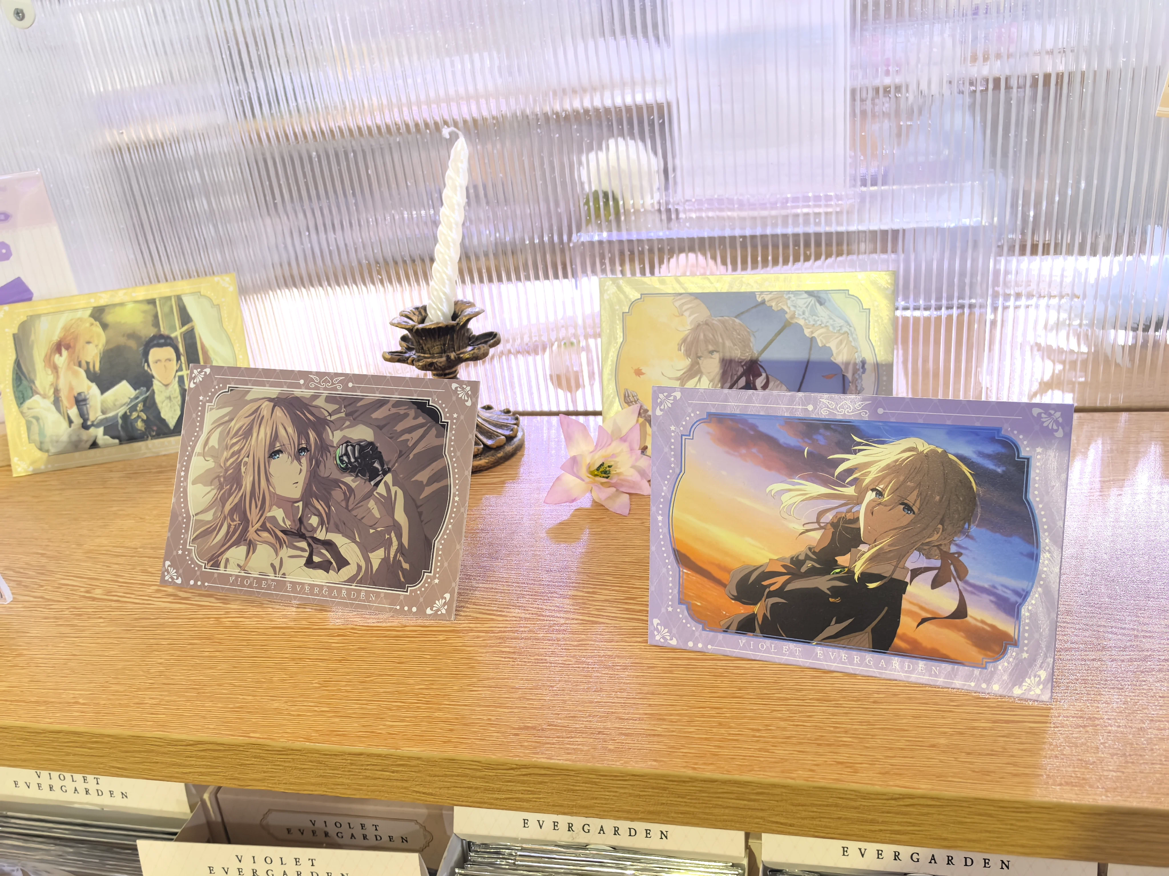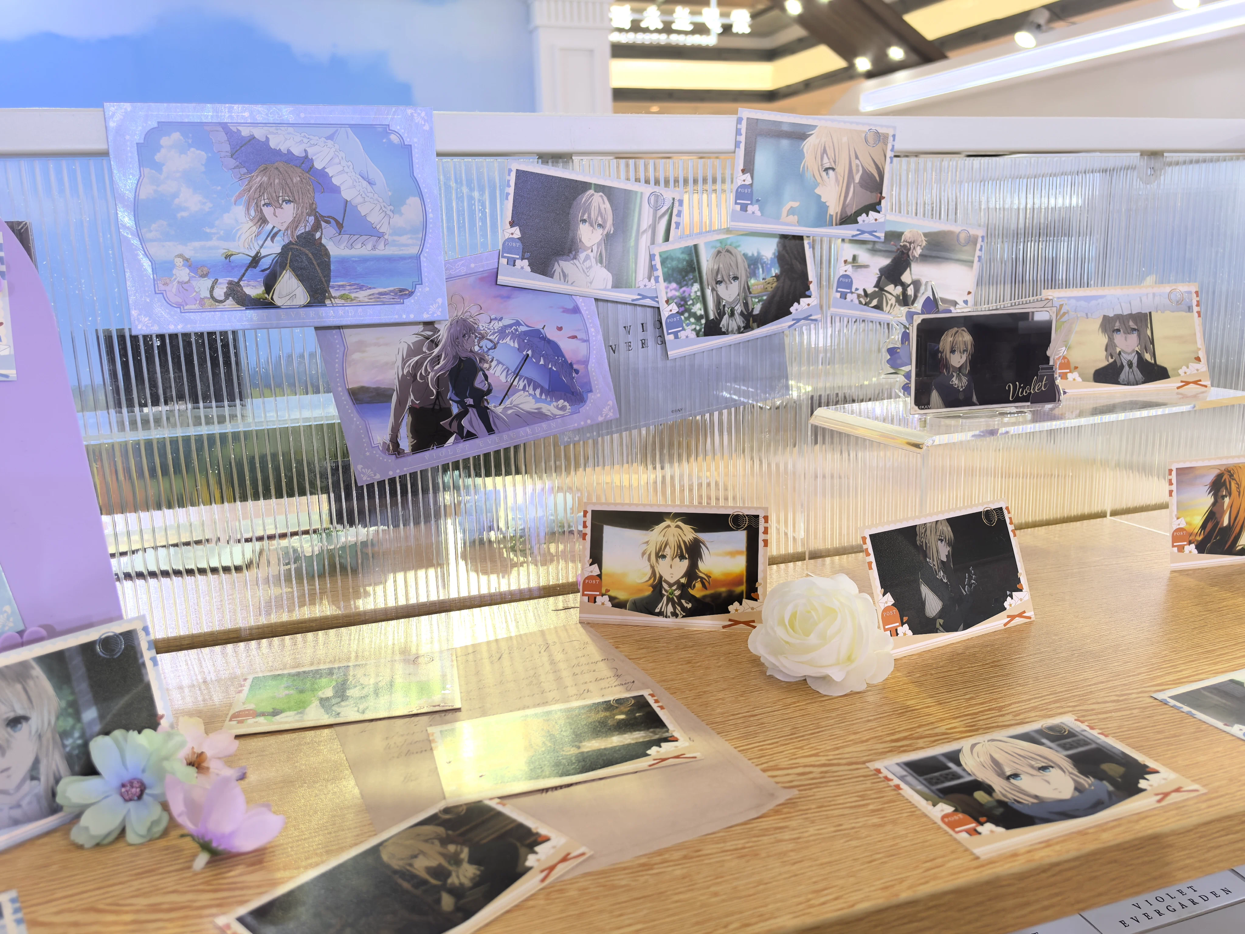 - 快闪店正面的IP名称和薇尔莉特等身亚克力大立牌!