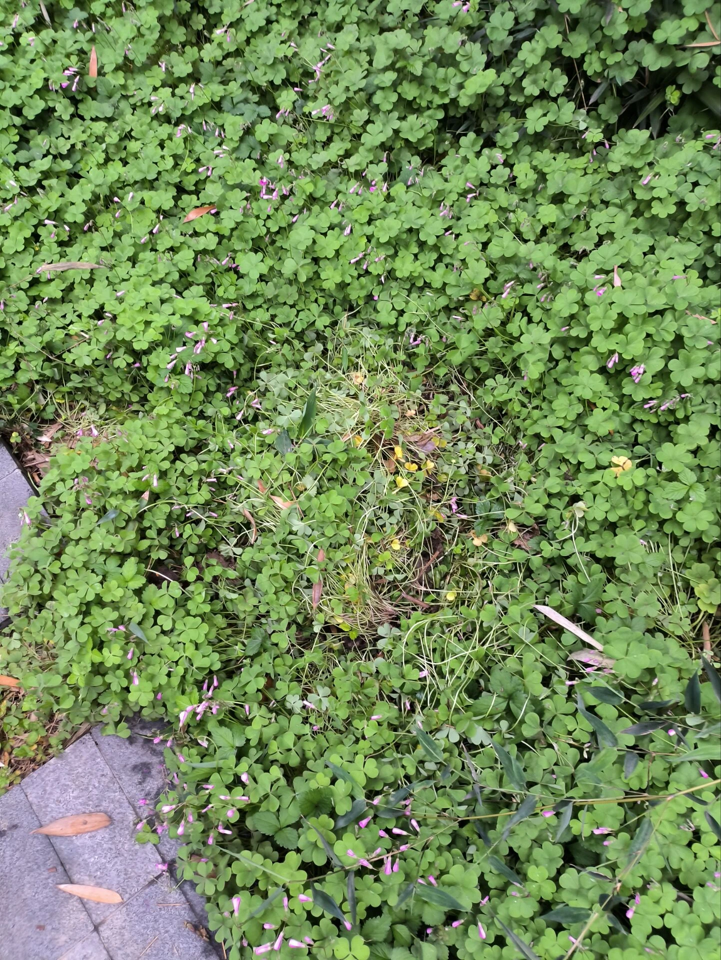 (江光临走向小树林边缘的草丛,拔出了两丛酢浆草。)