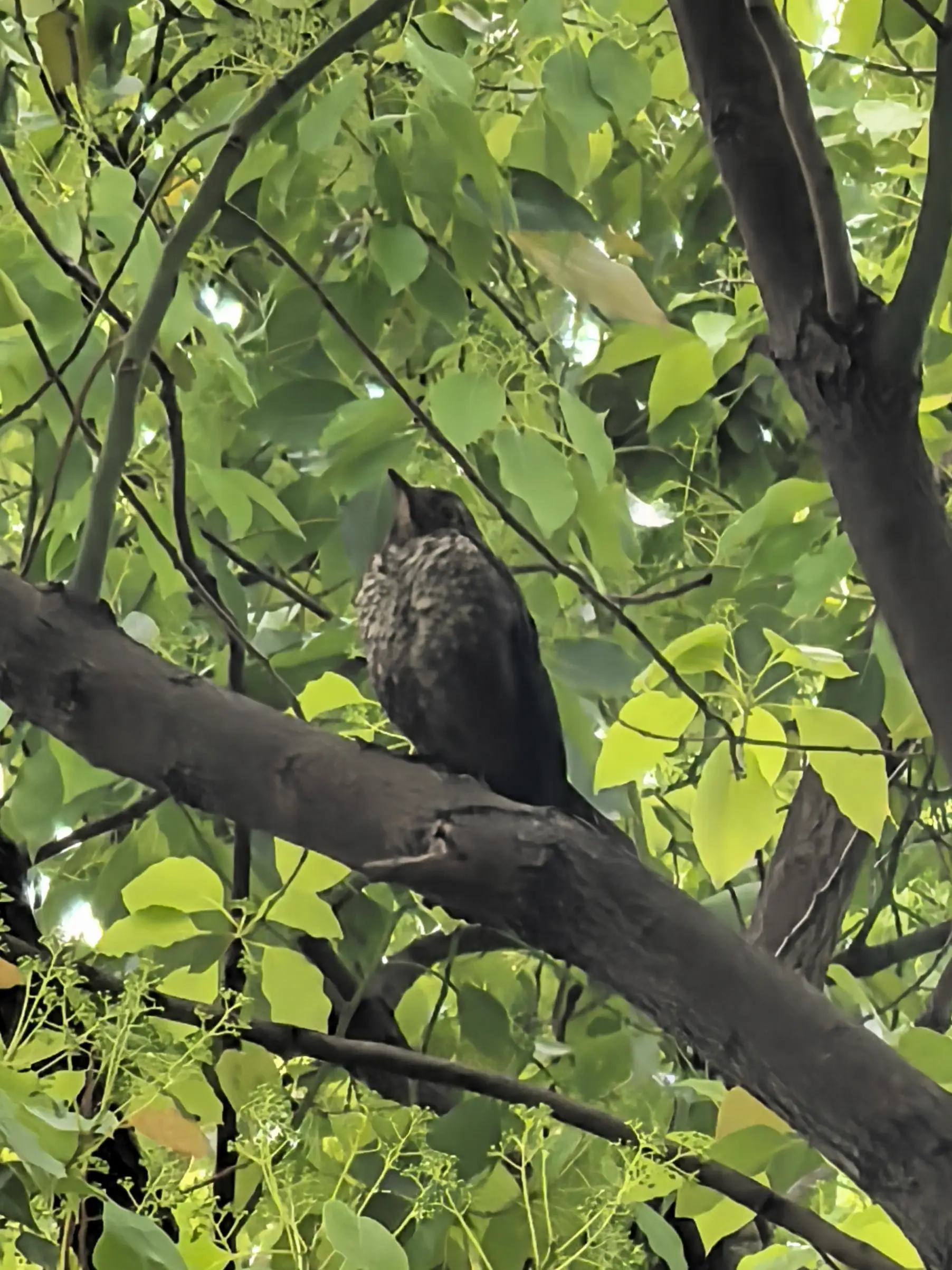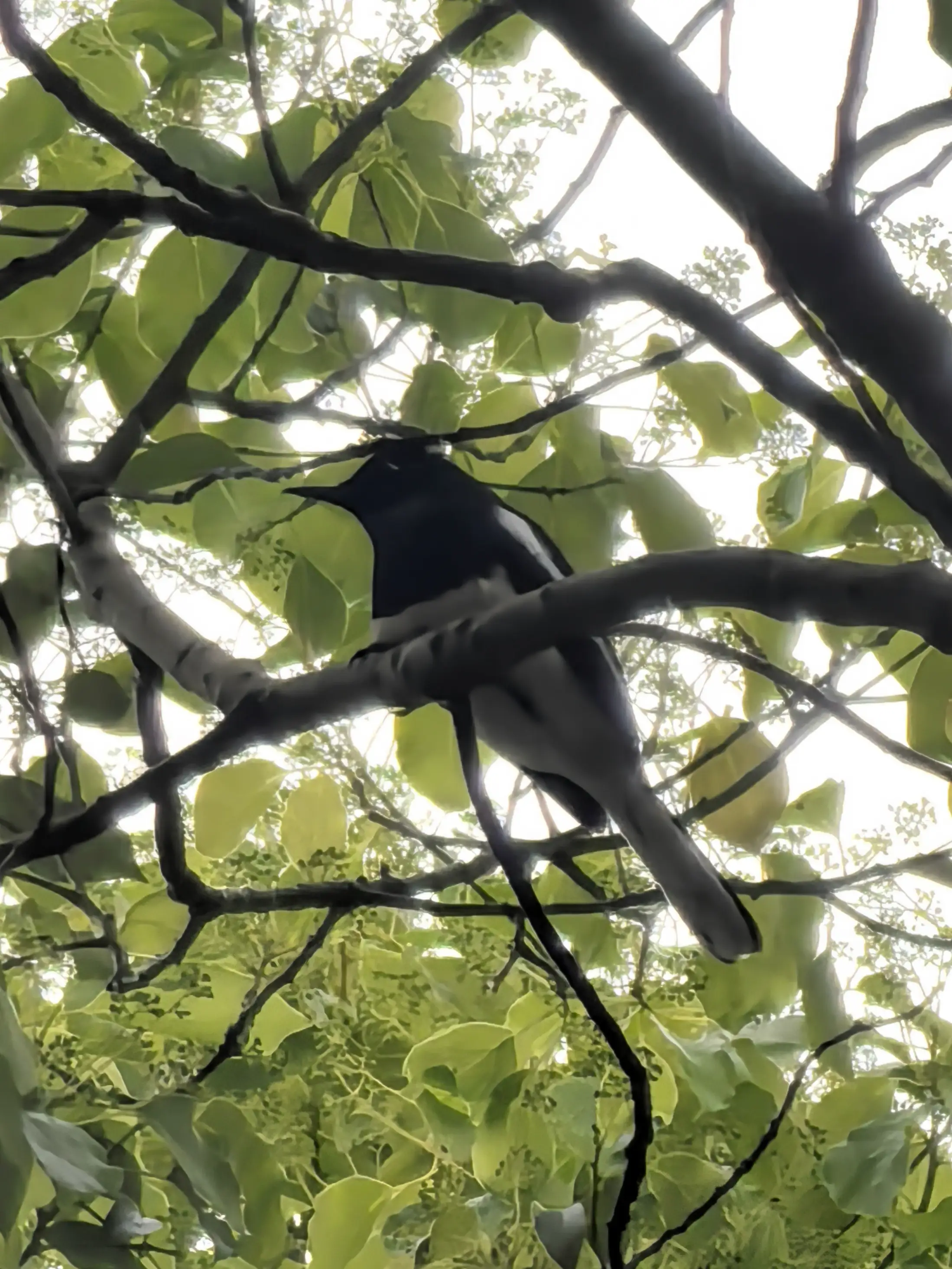 - 中午下去丢垃圾&买水果的时候听到寝室楼门外的那棵树上特别吵,遂抬头看去。