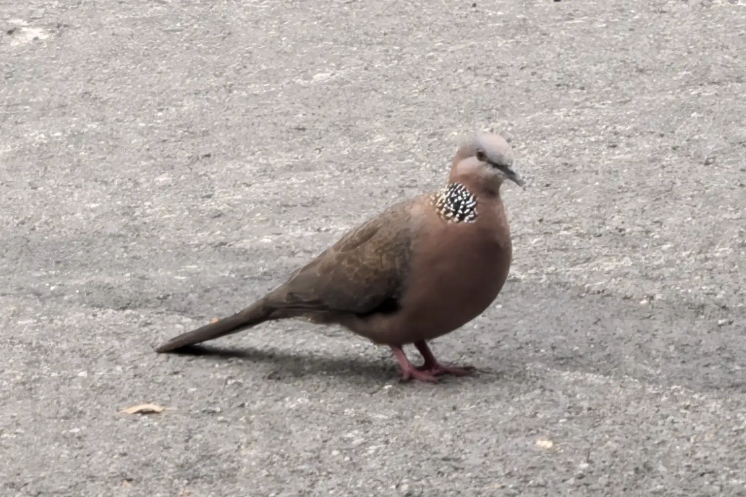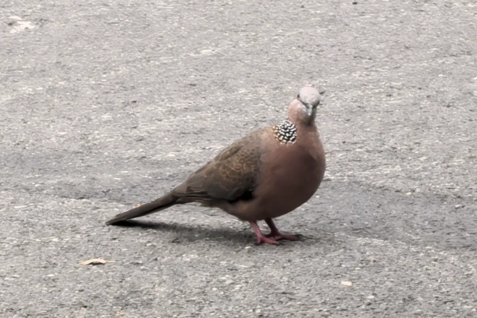 - 中午在食堂三楼吃饭时遇到的珠颈斑鸠!